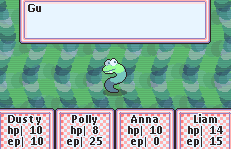 While I was happy with the way the battle screen looked, I still wasn’t quite happy with the designs for the main characters. Each of them, save for Liam, was given a slight redesign, in order to make the fit the way the rest of the game looked a little better. Liam was, however, made two pixels taller. Because he’s a big boy.